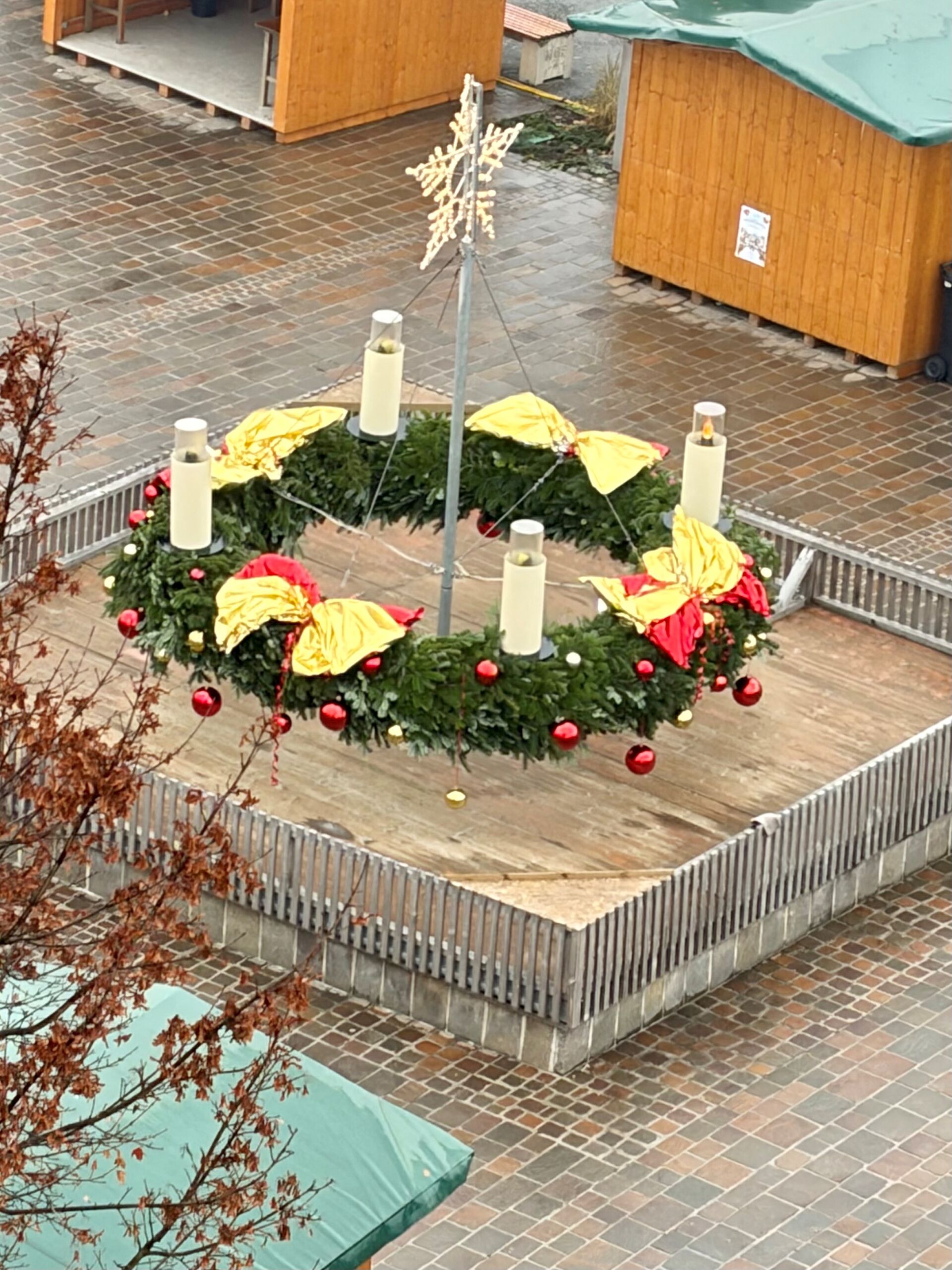 Dieser schöne Adventkranz sorgt beim Adventmarkt in Feldkirchen bei Graz für festliche Stimmung.