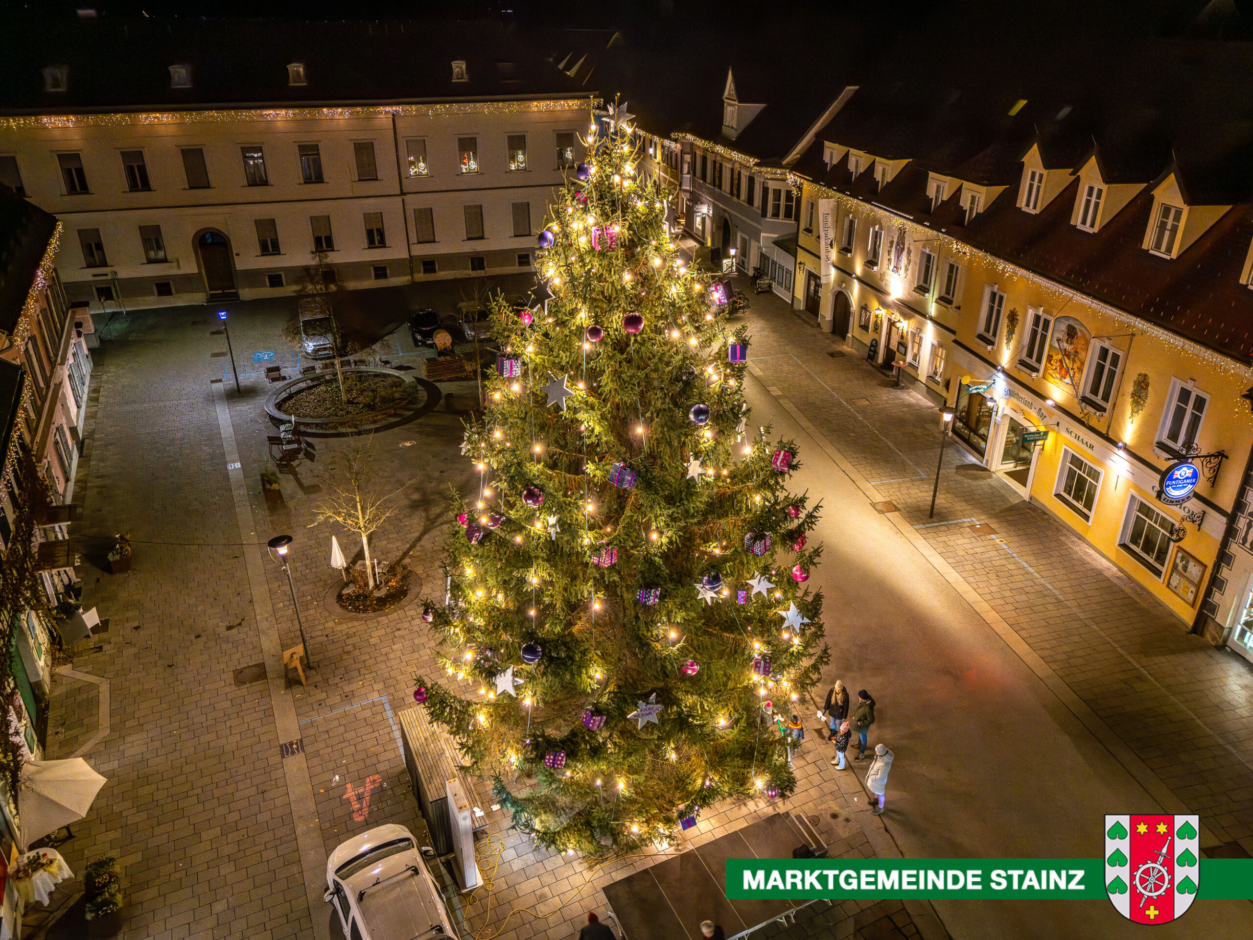 Am Hauptplatz in Stainz steht dieser festlich geschmückte Christbaum. Die Adventzeit wurde mit einem Fest mit rund 300 Kindergarten- und Schulkindern sowie Eltern eröffnet. In diesem Rahmen wurde unter anderem die Weihnachtsbeleuchtung eingeschalten.