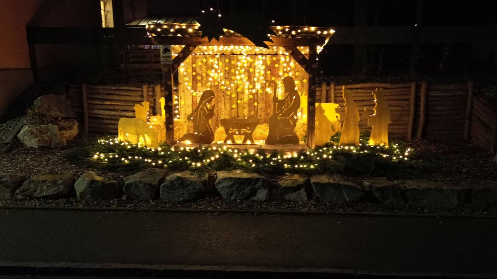 In Mitterdorf an der Raab sorgt eine beleuchtete Holzkrippe für Weihnachtsstimmung.